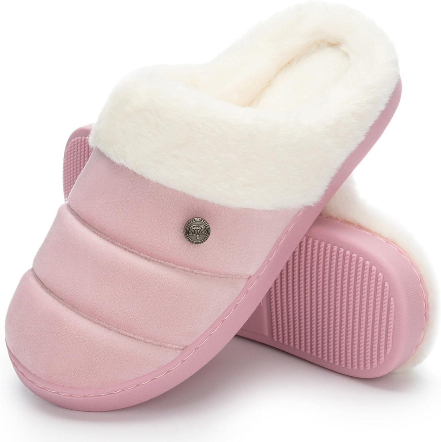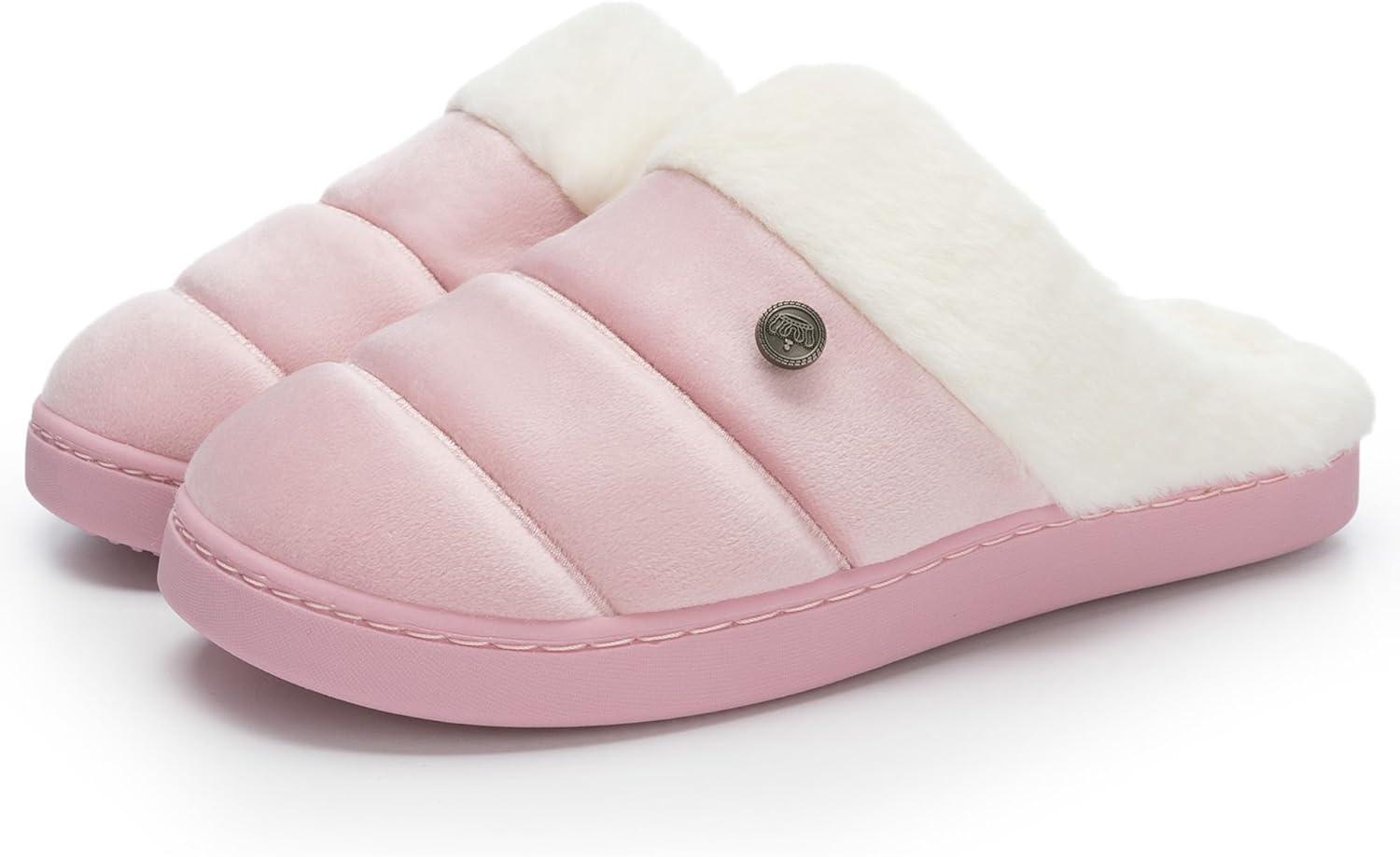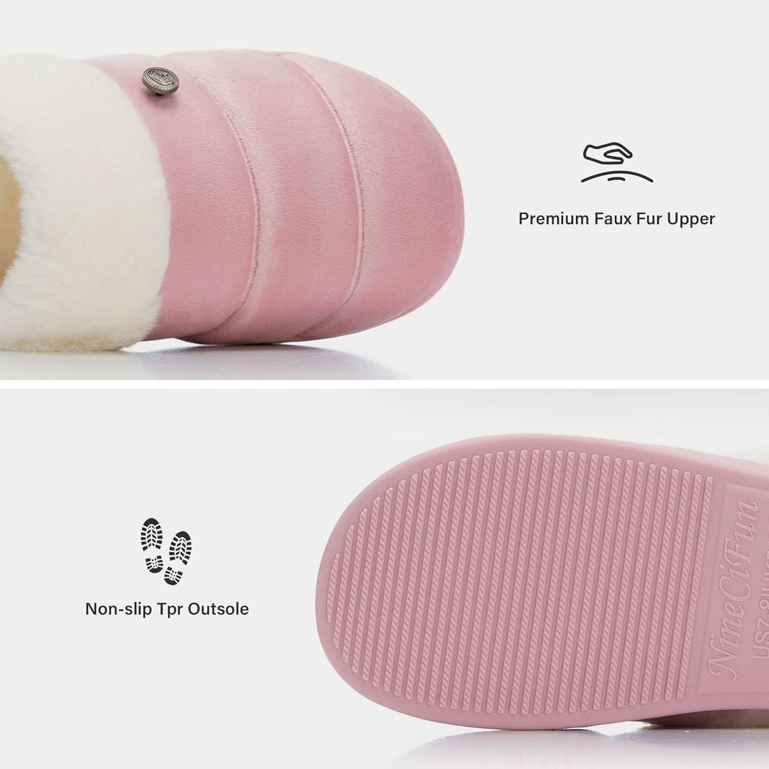 NineCiFun Women’s Cozy Fuzzy Slippers Memory Foam Plush Soft Non-Slip House Shoes Warm Indoor Outdoor Slippers(Pink)