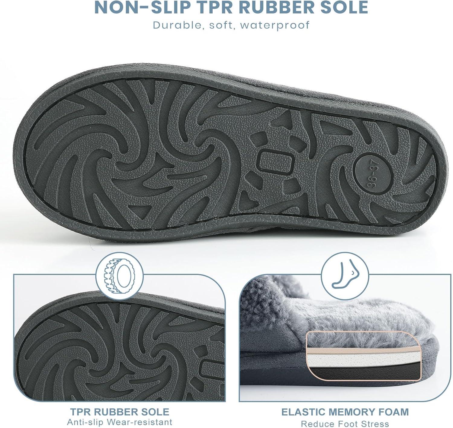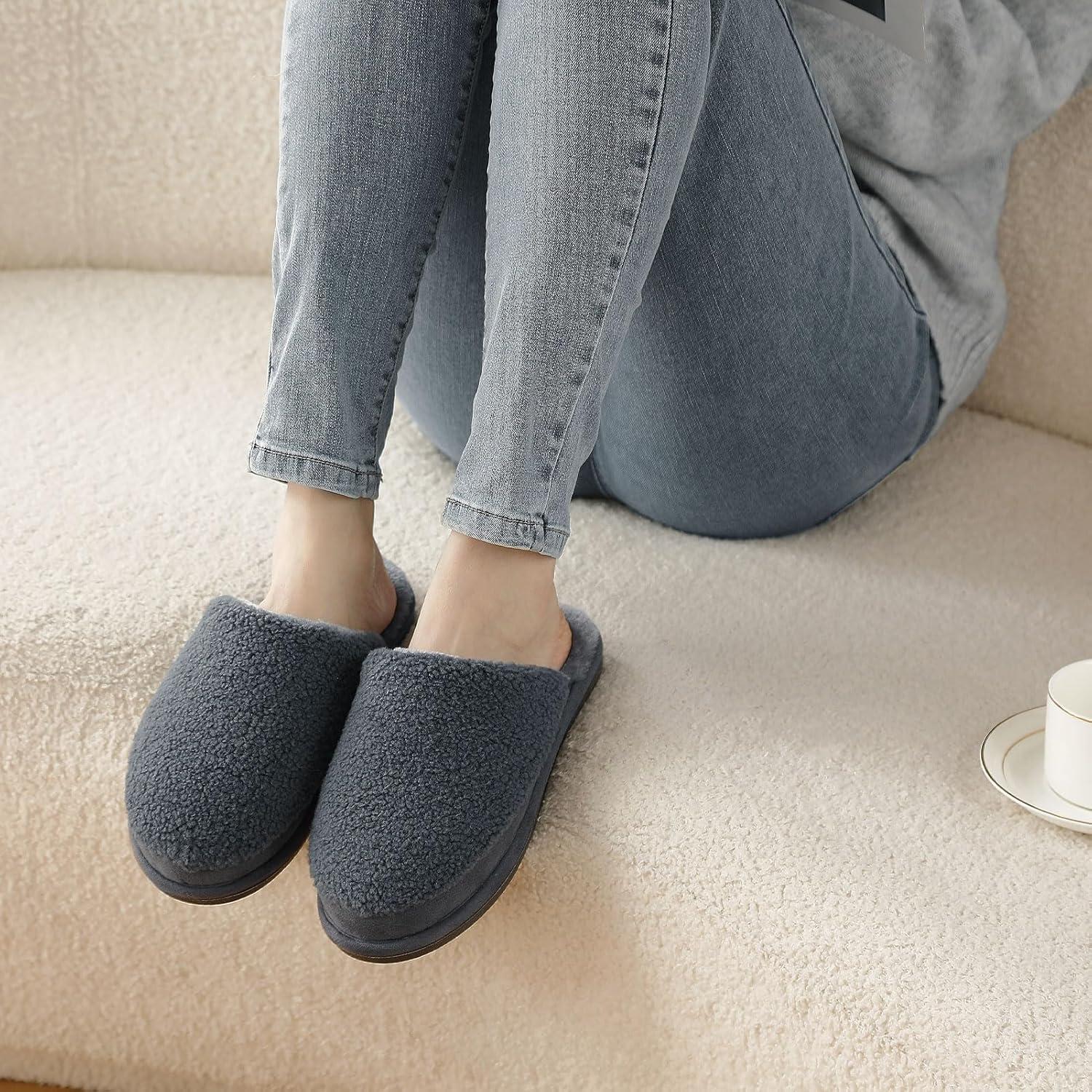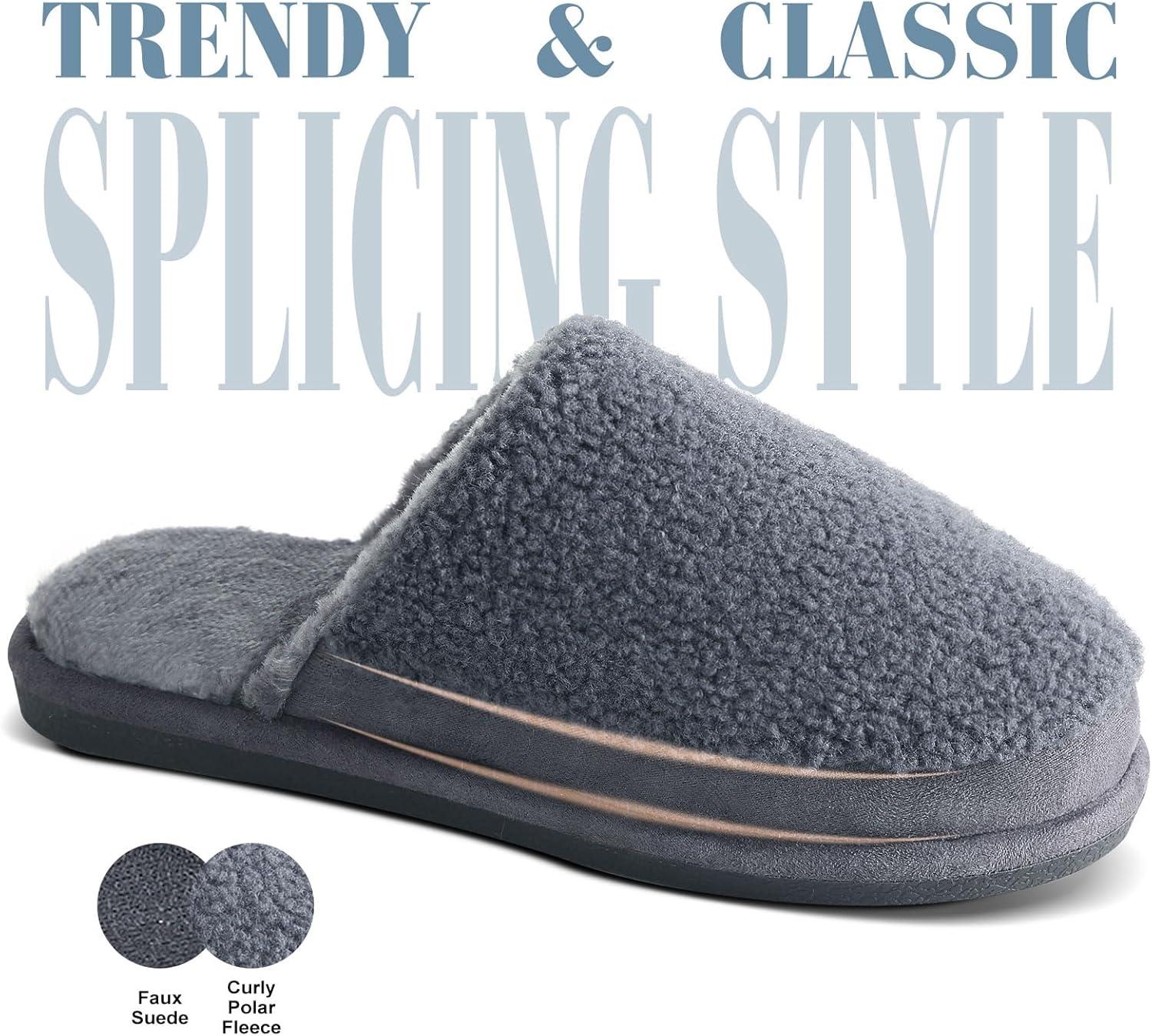 Parlovable Women’s House Slippers – Polar Fleece Splicing Style Slip-on Indoor Fuzzy Memory Foam Shoes Slipper(Grey)