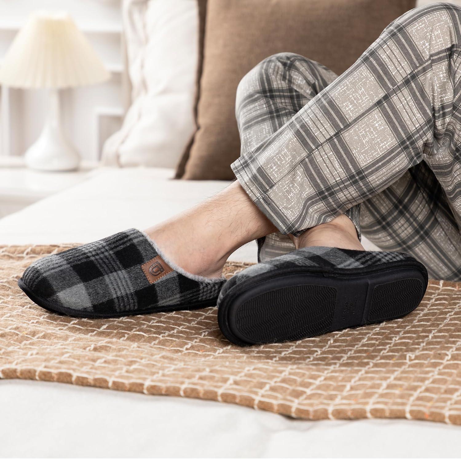 ULTRAIDEAS Men’s Fuzzy Scuff Slippers Comfy Winter Warm Indoor House Shoes Fur Lined(Grey/Black)